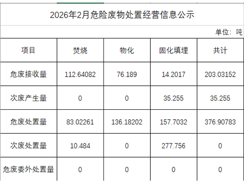 2026年2月危險(xiǎn)廢物處置經(jīng)營信息公示