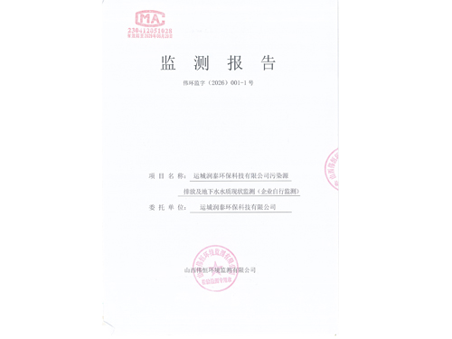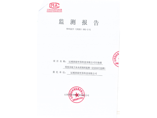2026年潤泰環(huán)保一月份自行監(jiān)測報(bào)告